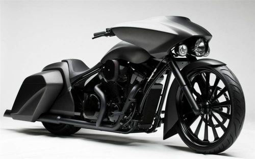What does a modern day Count Dracula ride to Sturgis? It just might look something like the “Slammer”, a concept created by Erik Dunshee for Honda. Based on a 2010 Stateline, it’s both ornate and minimalist at the same time (if that’s possible). As black as a moonless night, the full front end conversion drapes over a custom 23-inch wheel, and the fuel tank and body taper beautifully toward the rear. Power comes from a VT1300cc engine, and the air ride suspension can drop over four inches for effortless, aerodynamic cruising that’s worthy of the prince of darkness. Who would have thought Honda was interested in the dropped-Bagger scene?